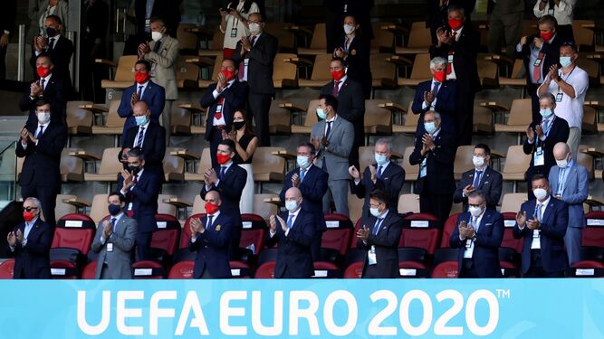 El líder blanquiazul presenció el partido junto a otras autoridades de primer nivel, como el presidente de la FIFA, Gianni Infantino, el presidente de la Junta de Andalucía, Juan Manuel Moreno Bonilla, o Luis Rubiales, presidente de la Real Española. Federación de Fútbol. También estuvieron presentes el alcalde de la ciudad, Juan Espadas, así como el presidente del Comité Olímpico Español, Alejandro Blanco, el presidente de la Asociación Eslovaca de Fútbol, Jan Kovacik, y otras autoridades institucionales y deportivas.
