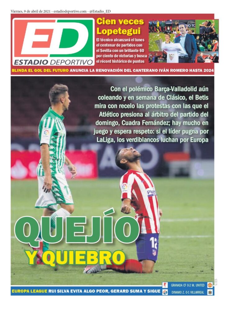 La portada de ESTADIO Deportivo para este viernes 9 de abril: